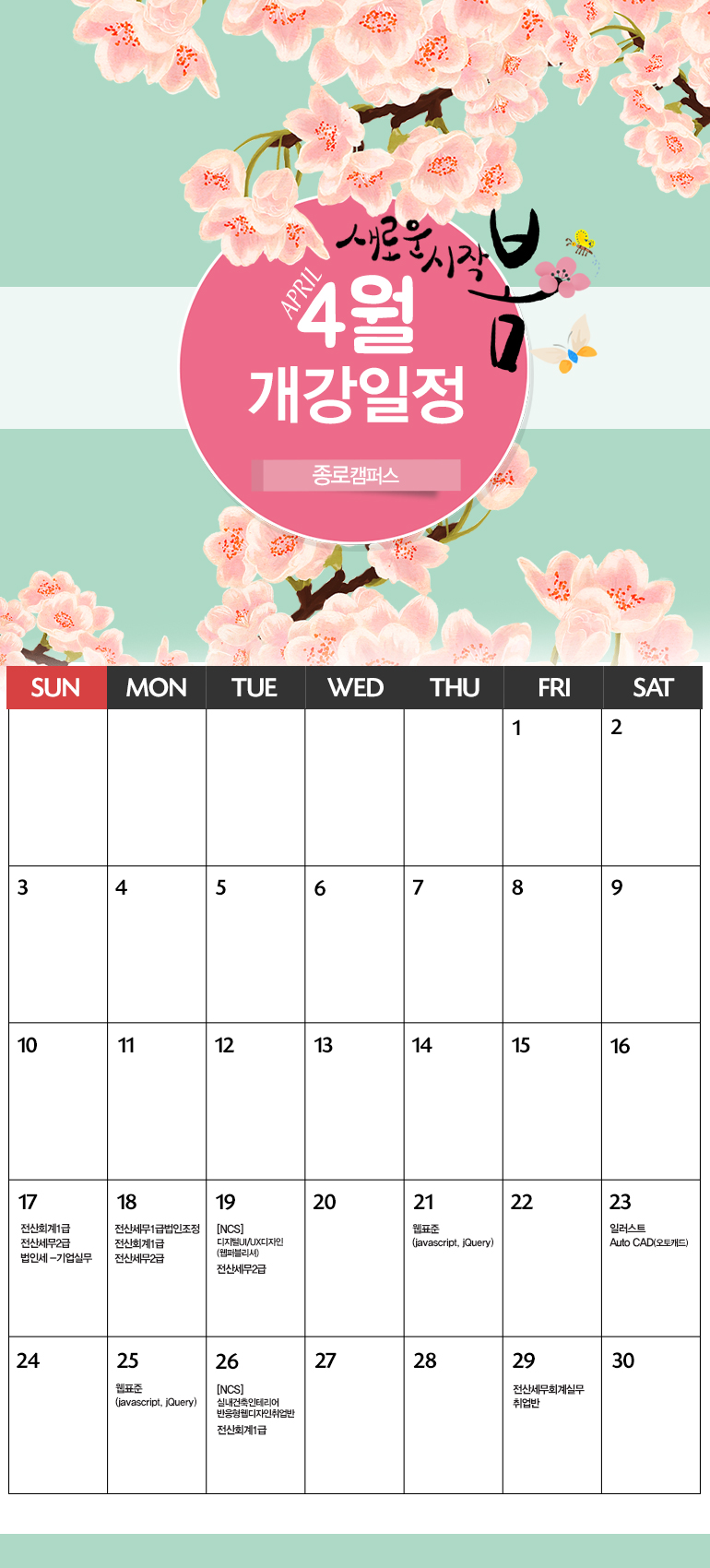 [종로캠퍼스]4월개강일정