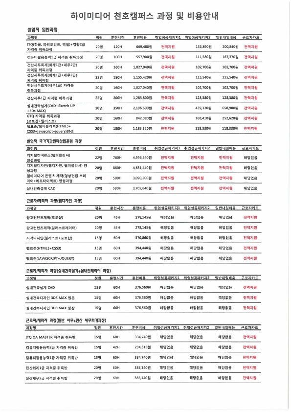 [2018년] 하이미디어아카데미 수강료 안내