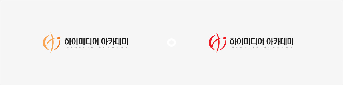 하이미디어아카데미 로고칼라는 심벌색상과 함께 "PANTONE Hexachrome Black C, PANTONE 422 C"를원칙으로 합니다.